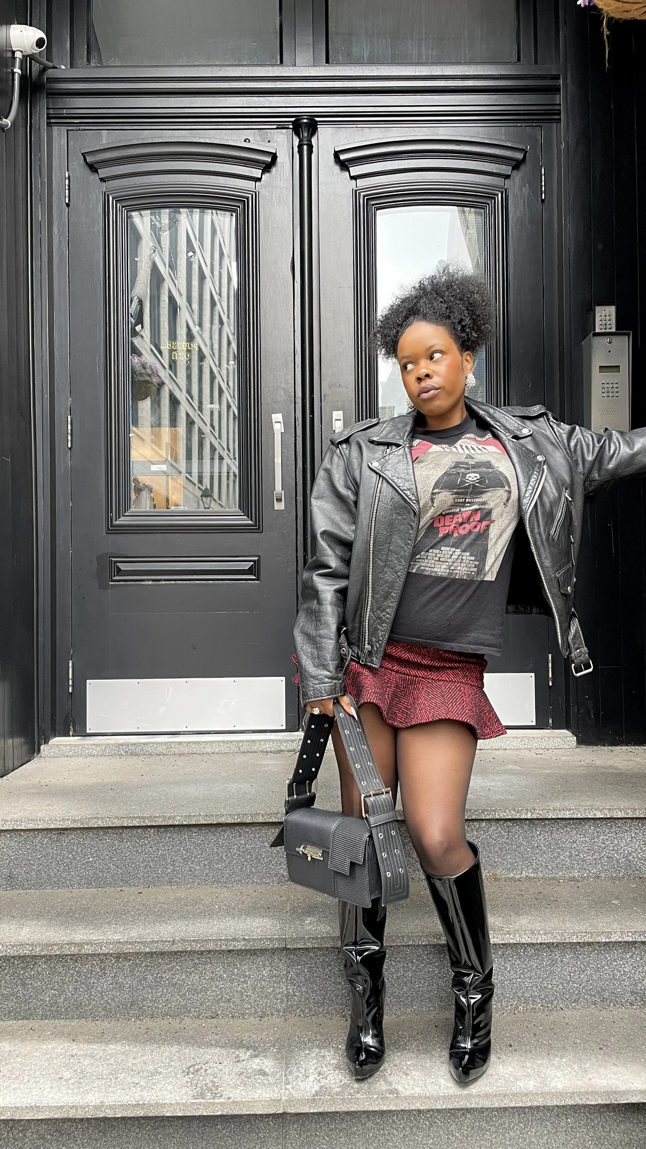 As an all-season boot girl, I had to have them, but as a diva on a dime I would not as they were either sold out in my size, or carried somewhere that priced them way out of my budget. This is the kind of sadness some of the greatest romantic tragedies are written on by the way, but I was steadfast in my yearning. Eventually they’d come to me, because everything I want wants me back. There is simply no reality where me et this boot cannot be. A high-shine finish for a high-octane diva, an erotic rigidity juxtaposed with softness is delicious visual absurdity for a whimsical freak. On top of all that, I had already mentally styled them with my Cavalli bubble skirt et the look was very Vaquera, a further exploration into fashion surrealism. Who could say non to that?
